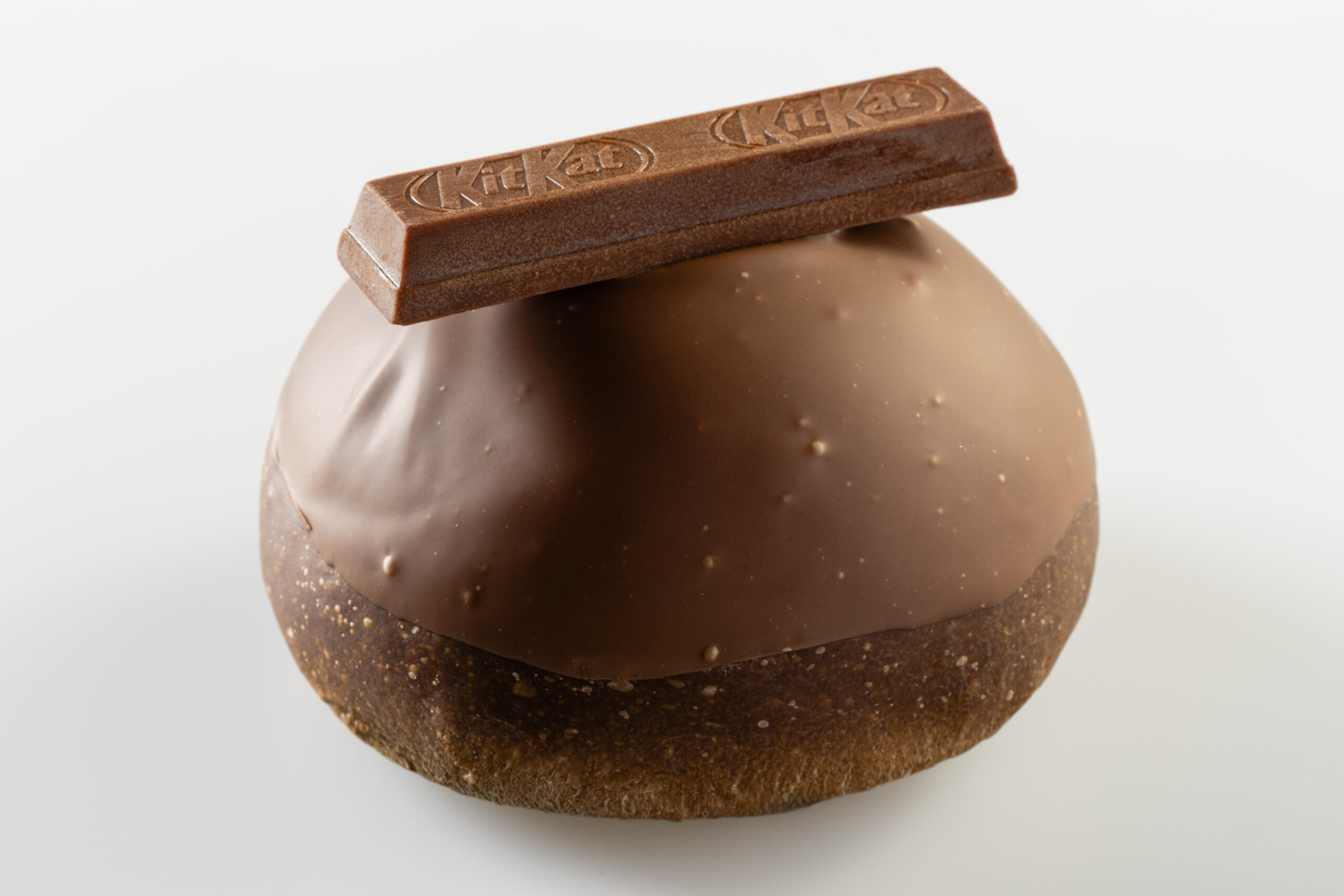 Veneziana al cacao farcita con crema KitKat, decorata con glassa al cioccolato al latte, decorata con barretta KitKat.